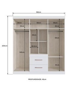 Guarda-Roupa Santiago 90906 1,80 m Off White/Nogueira – DORIPEL