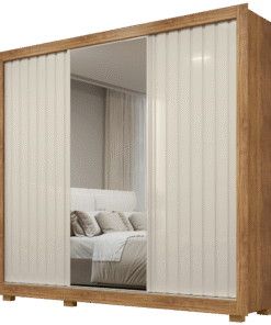 Guarda-Roupa Veneza/Clara/Berlim Plus(1 Porta espelhada) 1,855 m Cinamono/Branco – CARIOCA MÓVEIS