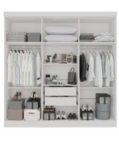 Roupeiro Dubai Branco 3 Portas C/ 1 Espelho Larg. 1.79m – Carioca