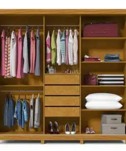 Roupeiro Casal Veneza Cinamomo 3 Portas 4 Gavetas C/ 1 Espelho Larg. 1.88m – Carioca
