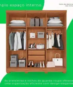 Roupeiro Casal Robust Plus Cumaru 6 Portas 8 Gavetas 100% MDF Larg. 2.76m – Novo Horizonte