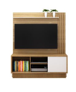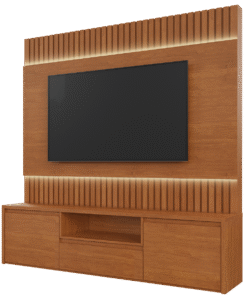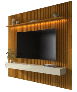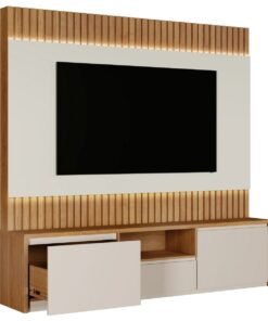 Home Apego Cinamomo/Off C/ Luminária LED e Detalhe Ripado TV até 65 Polegadas Larg. 2.00m – JCM