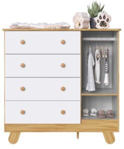 Guarda-Roupa 2 Portas Luna + Berço Uli Americano + Cômoda Junior Branco Brilho – PEROBA MÓVEIS