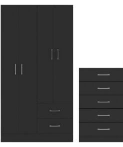 Guarda-Roupa 4 Portas Panamá 4002 + Cômoda 5 Gavetas Aruba Preto – FELLICCI
