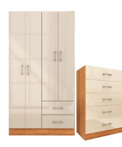 Guarda-Roupa 4 Portas Panamá 4002 + Cômoda 5 Gavetas Aruba Cinamono/Off White – FELLICCI