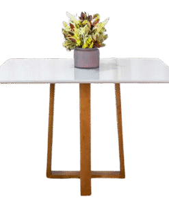 Mesa Pedro 120 Mel/Off White com 4 Cadeiras Stella Veludo Azul – ART ASSENTOS + CLEFATOS DECOR