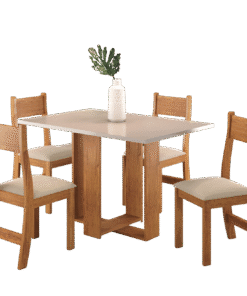 Mesa Magic/Milani Mel/Blonde com 4 Cadeiras Brisa Veludo Marfim – VIERO MÓVEIS