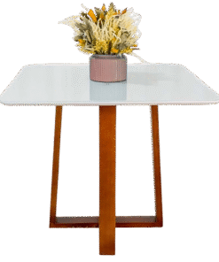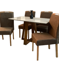 Mesa Pedro 120 Mel/Off White com Cadeiras Sophia/Capri Mel/Veludo Marrom – ART ASSENTOS + WM DECOR