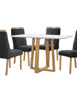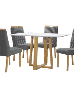Mesa Pedro 120 Mel/Off White com 4 Cadeiras Gênova Veludo Grafite – ART ASSENTOS
