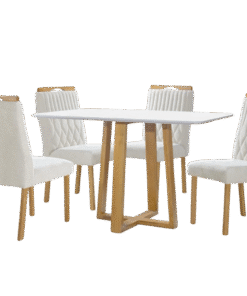 Mesa Pedro 120 Mel/Off White com 4 Cadeiras Gênova Veludo Marfim – ART ASSENTOS
