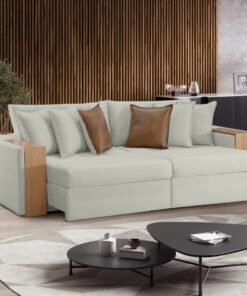 Sofá Cama Retrátil Maiori 2,32 m Linho Marfim 12 – INNOVE ESTOFADOS
