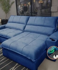 Sofá Cama Retrátil Tebas/Thebas/Gabriela 2,90 m Linho Grafite 301/Corino Dalas – ZARAT ESTOFADOS