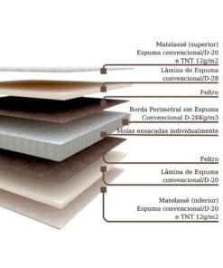 Colchão Queen Toronto D28 + Base Box Simples Corino Marrom – ECOTEC + ALTO NÍVEL CAMAS E COLCHÕES