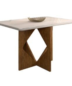 Mesa Pedro 120 Mel/Off White com 4 Cadeiras Gênova Veludo Marfim – ART ASSENTOS