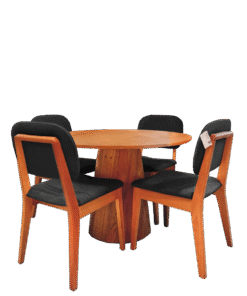 Mesa Redonda Simpatia 108 Cinamono com 4 Cadeiras Yasmim Veludo Azul – JCM MOVELARIA + KM DECOR