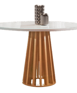 Mesa Redonda Berlim 100 Cinamono/Off White com 4 Cadeiras Sophia Veludo Bege – CEL MÓVEIS + WM DECOR