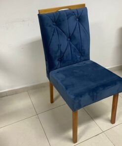 Mesa Salinas 90 Cinamomo/Off White com 4 Cadeiras Yasmim Veludo Azul – AVALON DECOR + KM DECOR