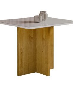 Mesa Salinas 90 Cinamomo/Off White com 4 Cadeiras Pérola Linho Bege– AVALON DECOR + DOBUÊ MOVELARIA