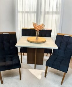 Mesa Salinas 90 Cinamomo/Off White com 4 Cadeiras Yasmim Veludo Preto – AVALON DECOR + KM DECOR