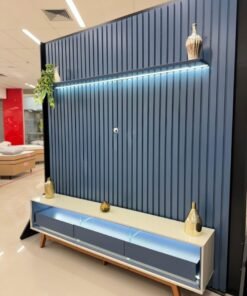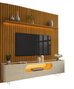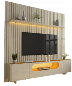Painel Nobre 230 Off White + Rack Nobre 210 (Pés de Vidro) Off White/Naturale – GELIUS