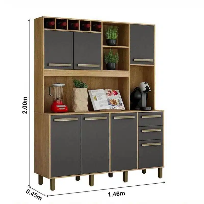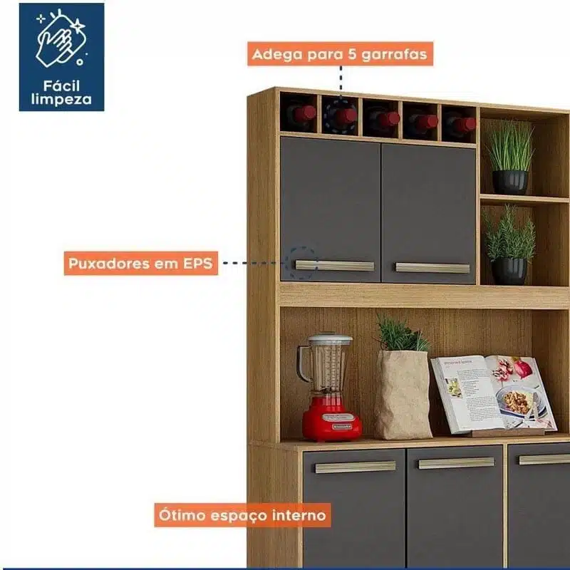 3{%%}Descrição{%%}Armário de Cozinha Granada Cinamomo/Grafite Valdemoveis