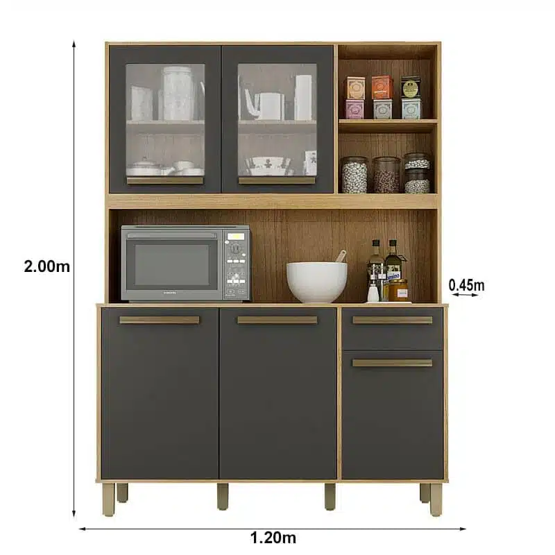 3{%%}Descrição{%%}Armário de Cozinha Rubi Cinamomo/Grafite Valdemoveis