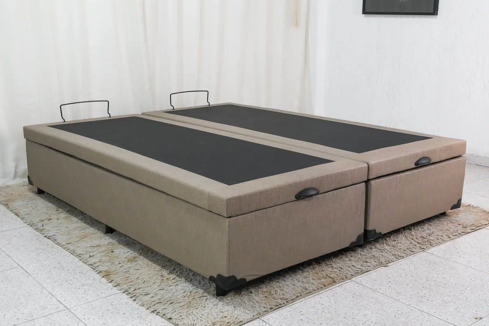 Base Box Baú Queen Bipartido Eli 158x198x42 Korino Bege Blindado Nature