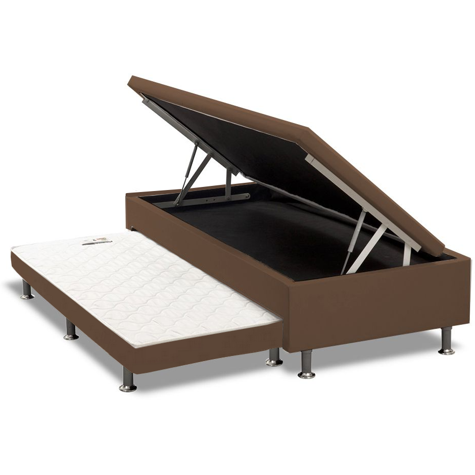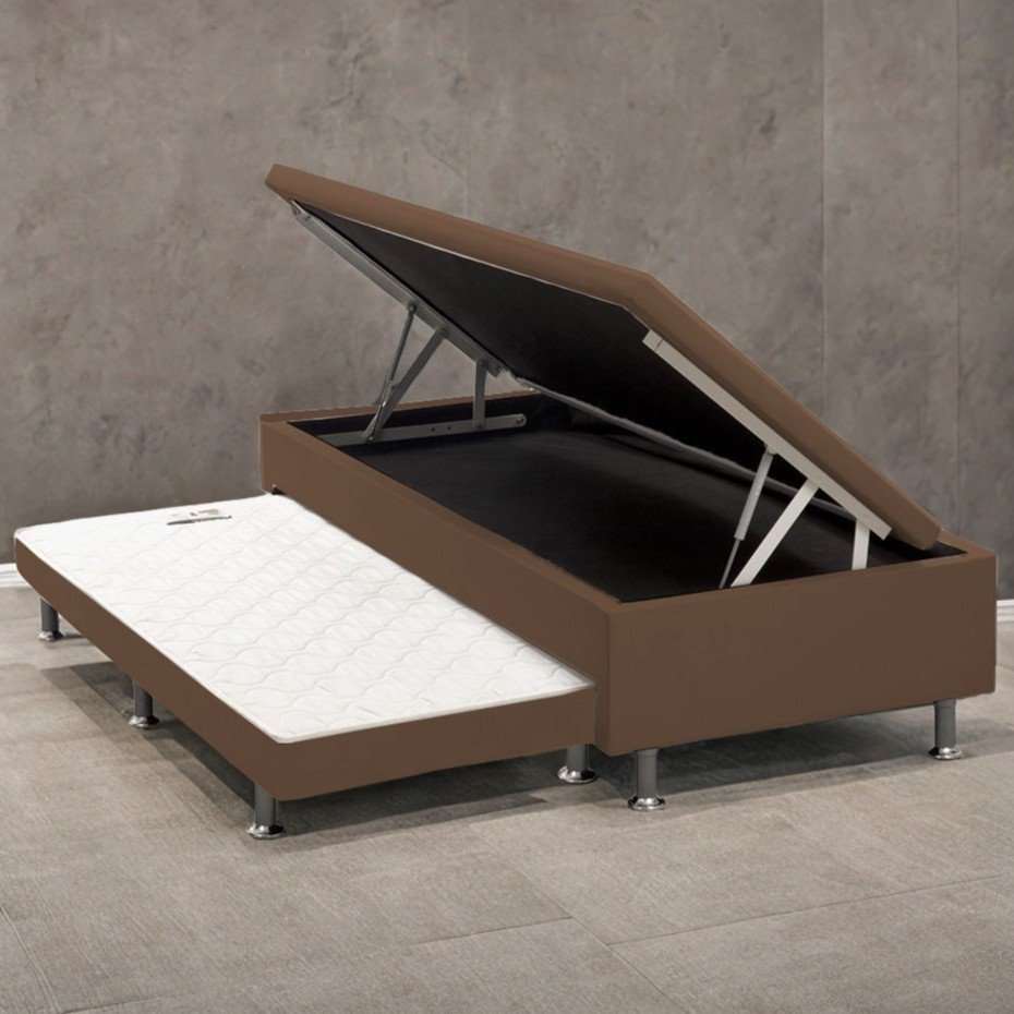 Base Box Solteiro Baú com Auxiliar Corino Marrom – ALTO NÍVEL CAMAS E COLCHÕES