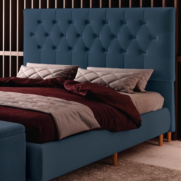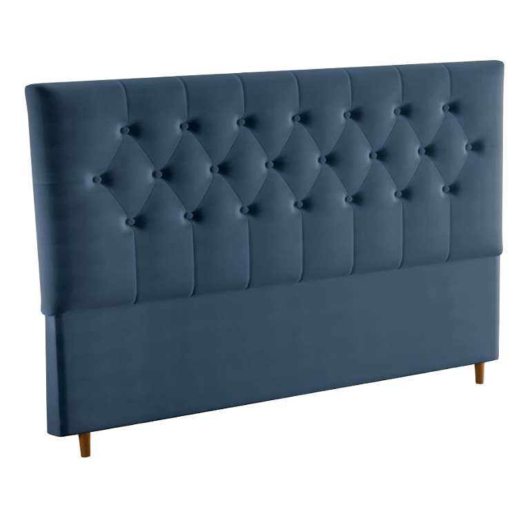 Cabeceira Casal Turim Veludo Azul B024- LARMÓVEIS/TREVO ESTOFADOS