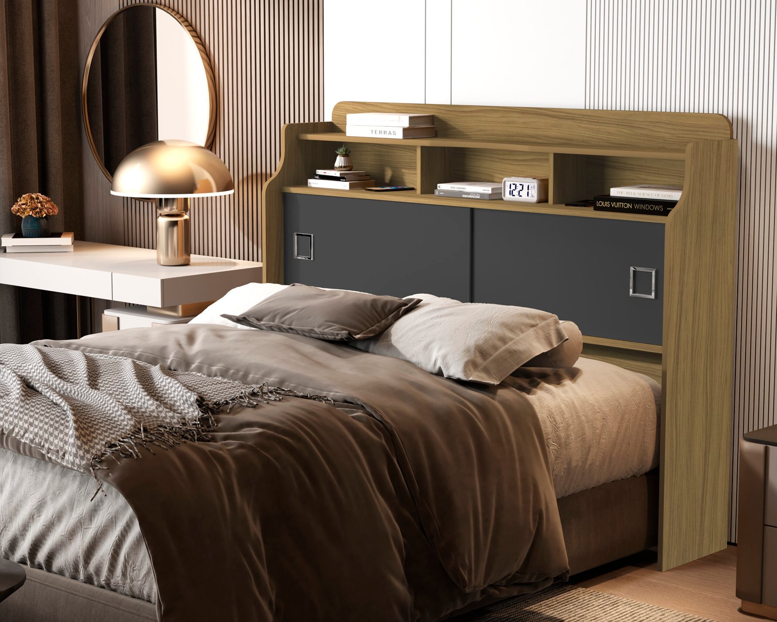 Cabeceira Queen Jéssica Freijó/Grafite/Freijó – VJ MÓVEIS