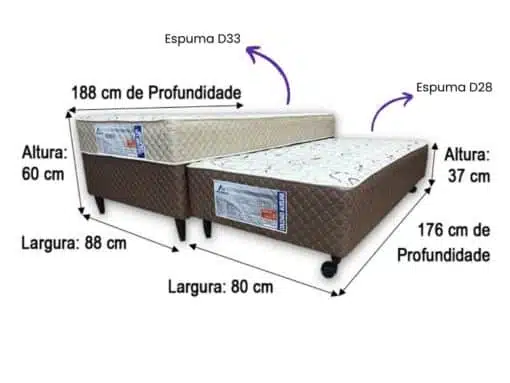 Cama box Light Sealed Solteiro com Auxiliar – 88x188x48