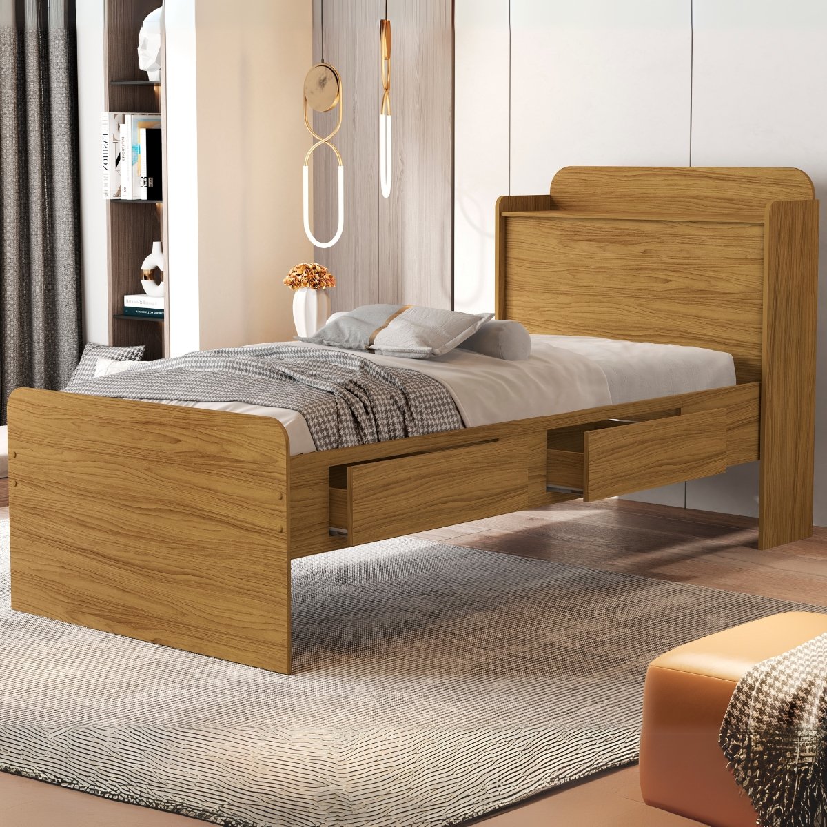 Cama Solteiro Baú Tamires Nature – VJ MÓVEIS