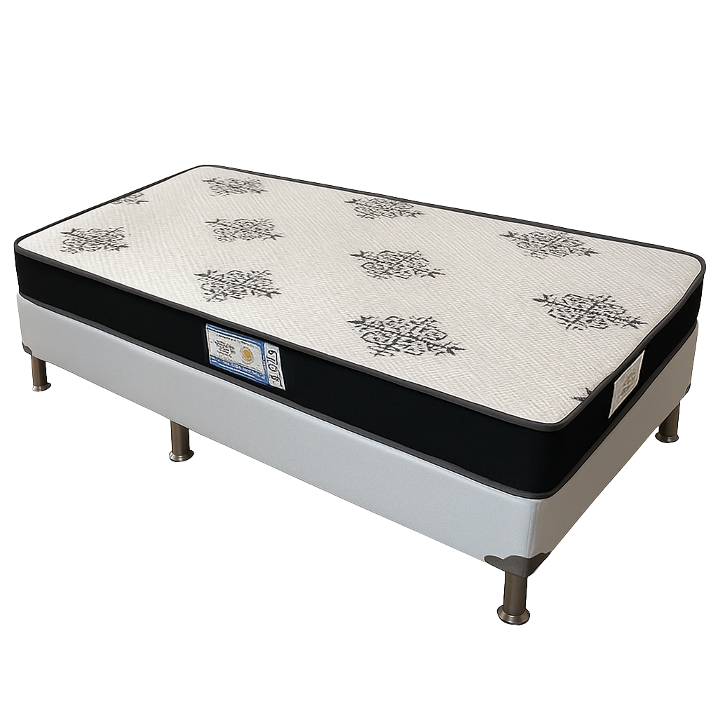 Colchão Solteiro Light D20 + Base Box Simples Corino Branco – ECOTEC + BIOSTAR