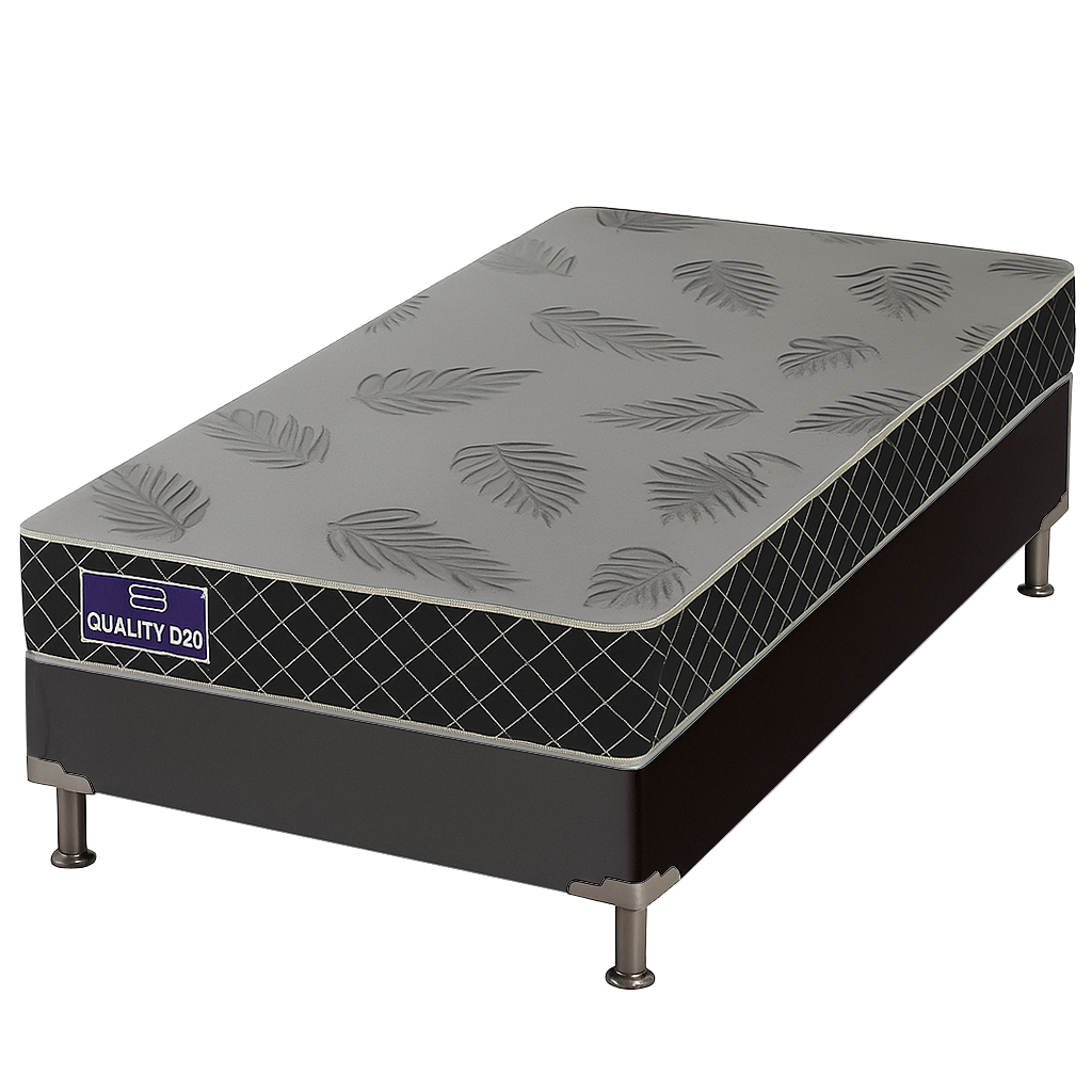 Colchão Solteiro Quality D20 12 cm 0,88 m + Base Box Simples Corino Preto – ORTHOPRIME + ALTO NÍVEL CAMAS E COLCHÕES
