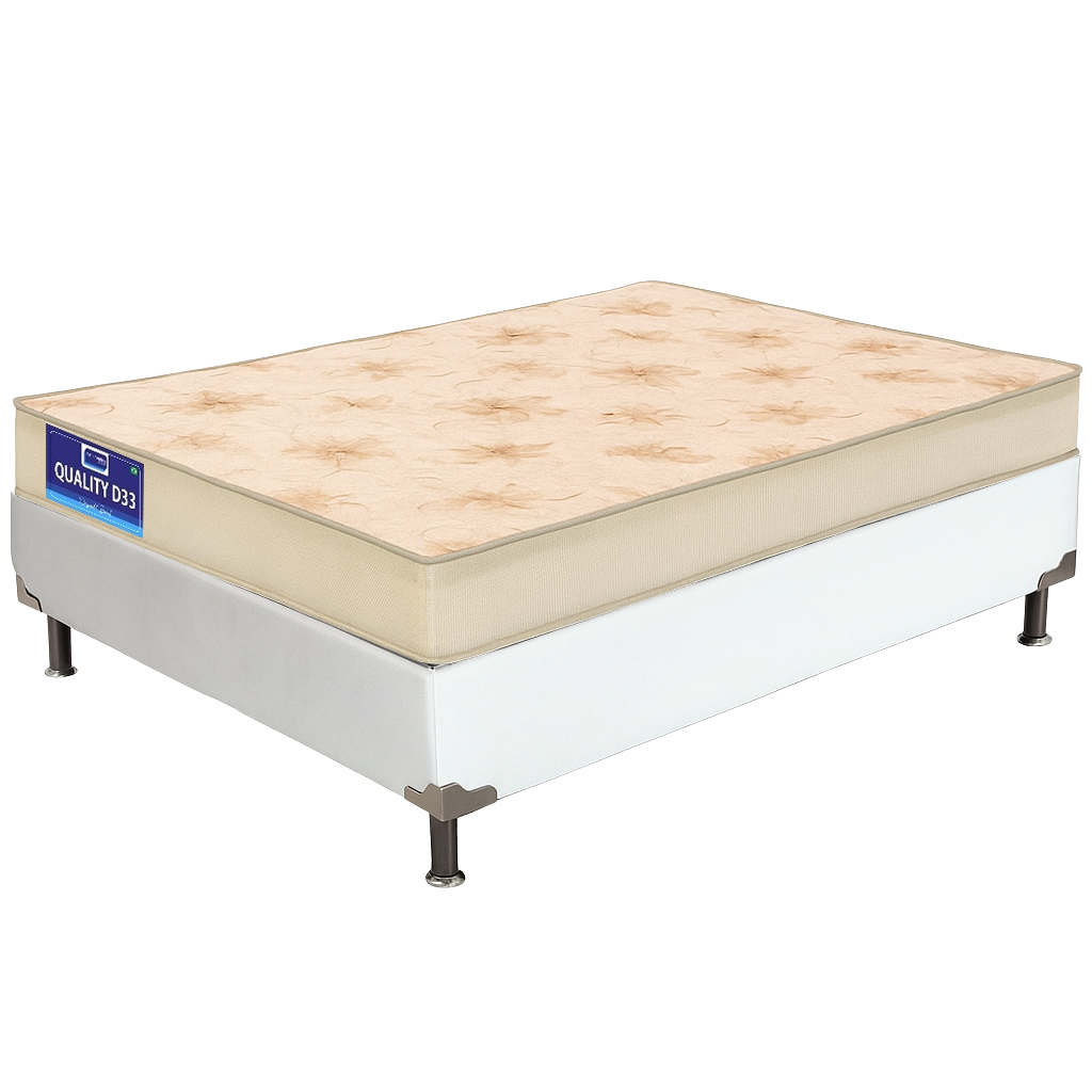 Colchão Solteiro Quality D33 14 cm 0,88 m + Base Box Simples Corino Branco – ORTHOPRIME + ALTO NÍVEL CAMAS E COLCHÕES