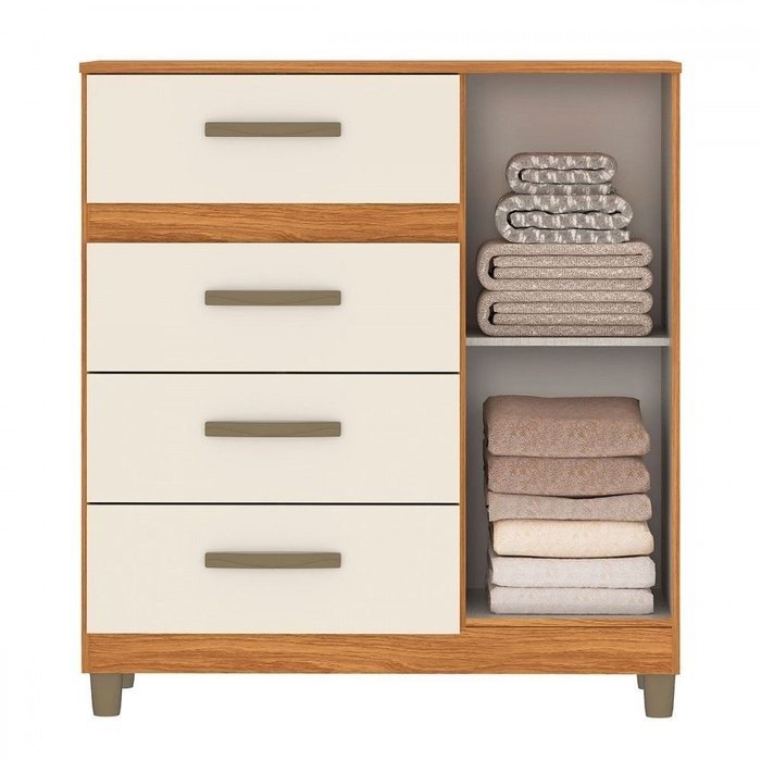Cômoda 4 Gavetas com Sapateira Leme CO240 Cinamomo/Off White – FELLICCI