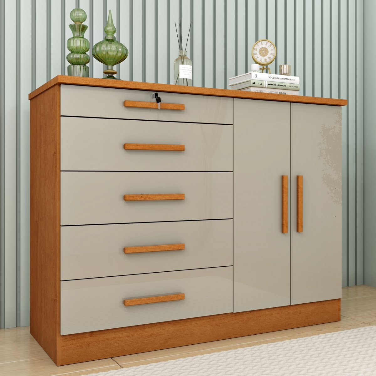 Cômoda 5 Gavetas Sapateira Dupla Istambul/Marmara Cinamono/Off White – TCIL