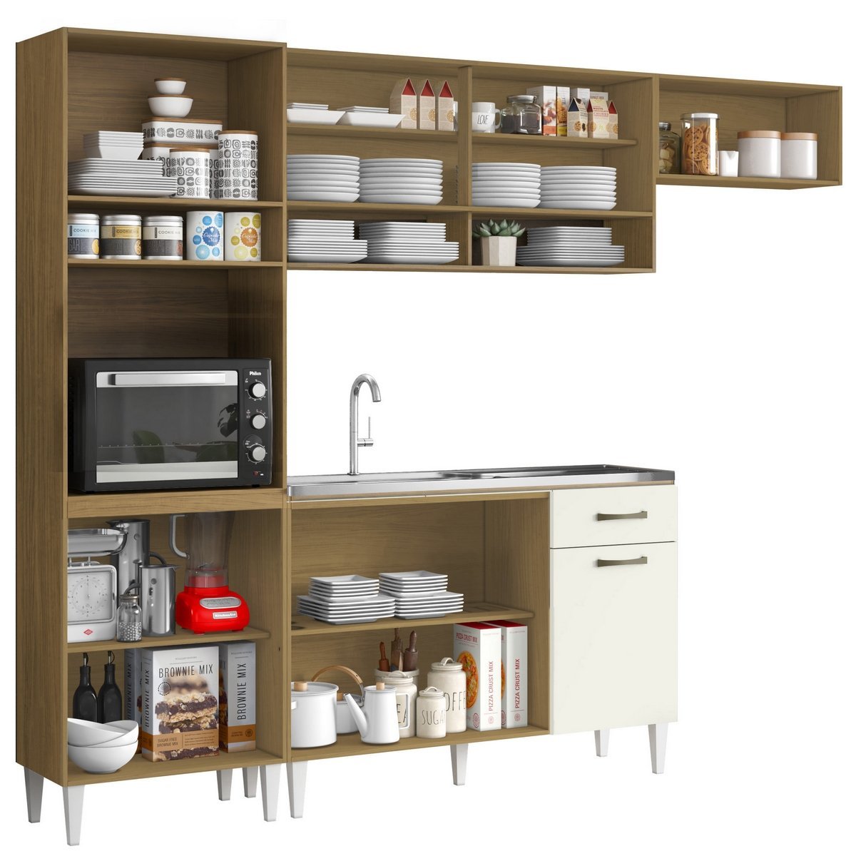 Cozinha Aurora + Balcão para Pia Atenas 249,7 m Atacama/Off White – ARAMÓVEIS