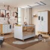 Guarda-Roupa 3 Portas + Cômoda + Berço Pingo Amêndoa/Branco Brilho – PEROBA MÓVEIS