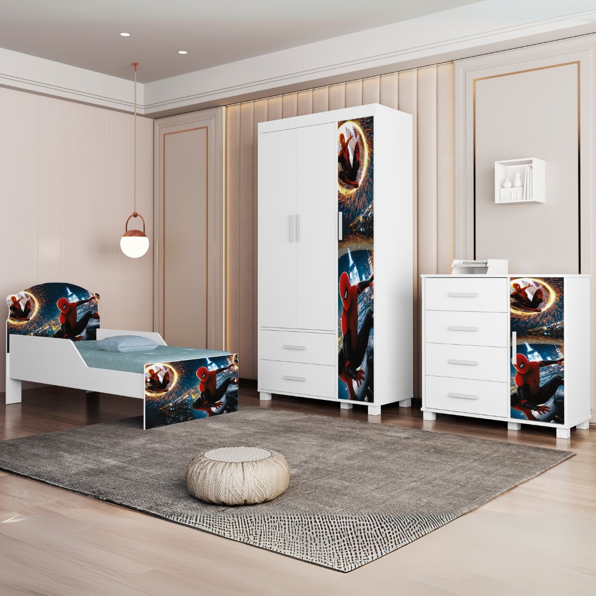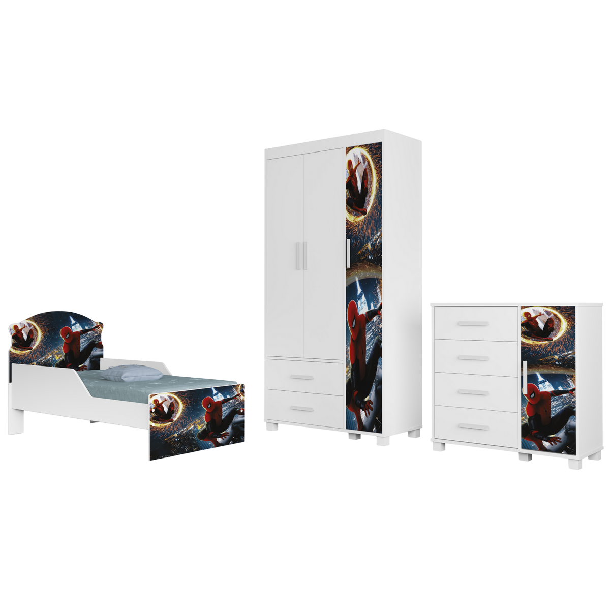 Guarda-Roupa 3 Portas Lívia + Cômoda Lívia + Mini Cama Juvenil Lívia (Menino) Homem-Aranha 14 – MADEC/VJ MÓVEIS