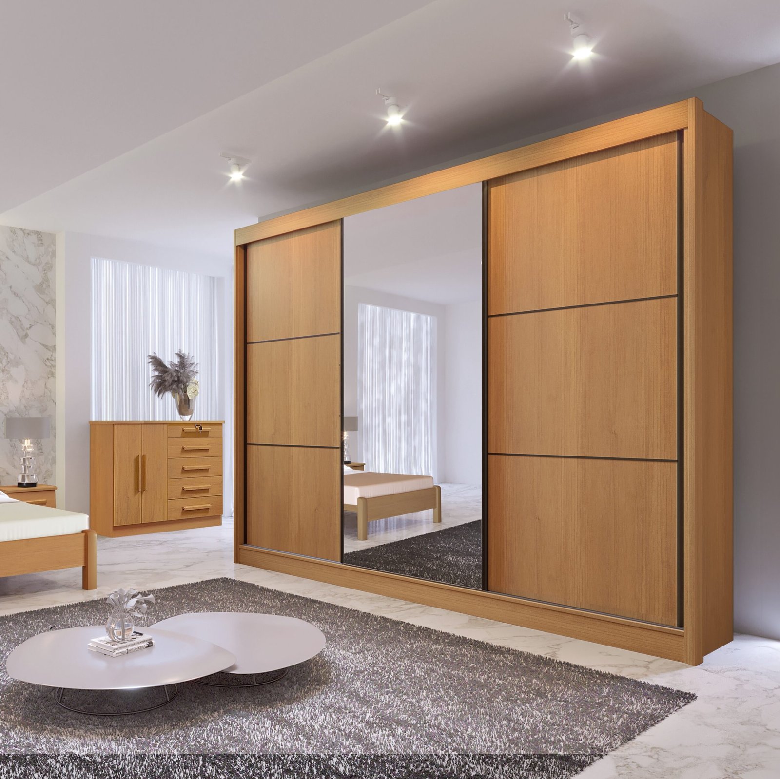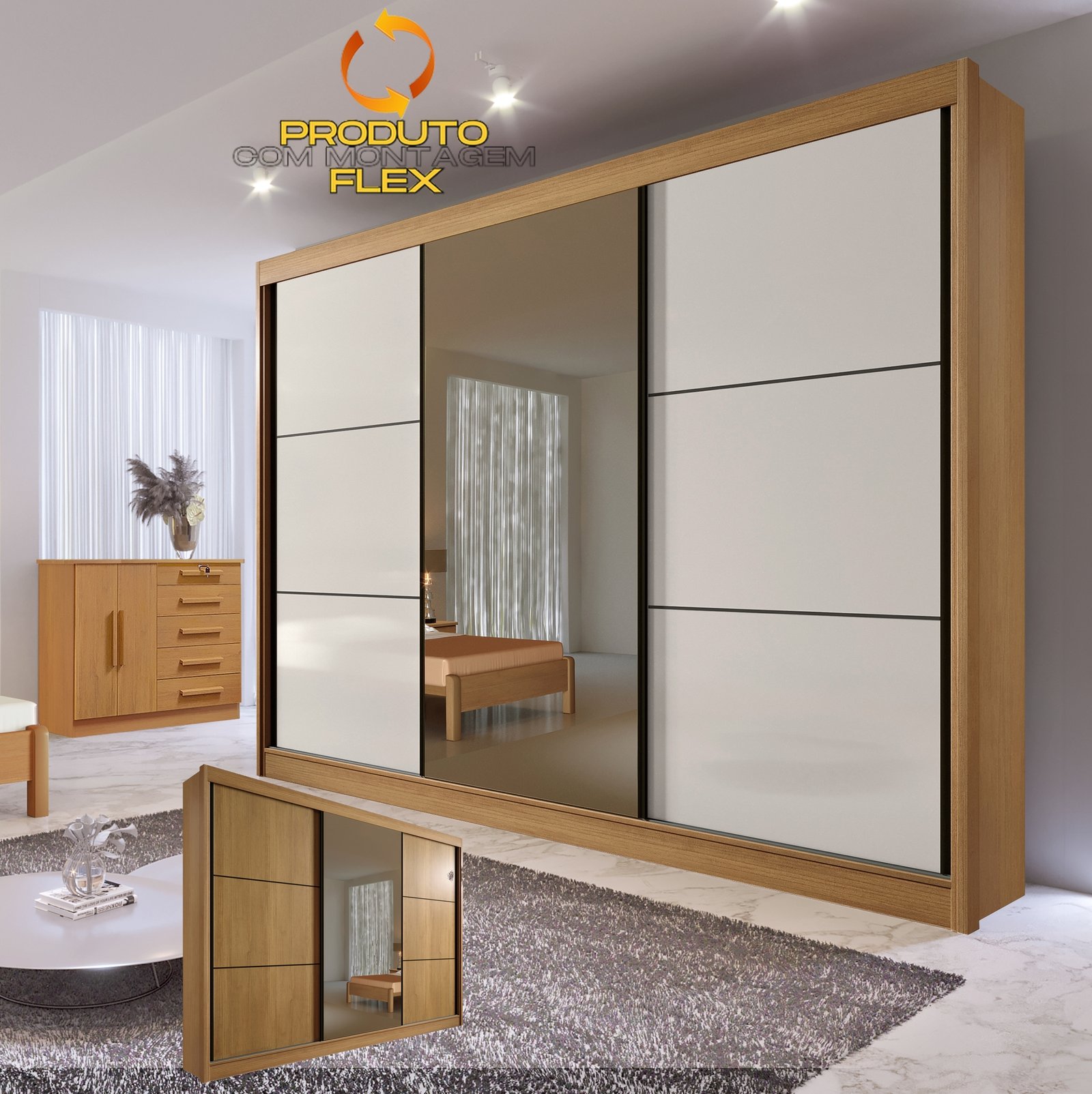 Guarda-Roupa 3 Portas Los Angeles Cinamono/Off White/Cinamono – D’DORO MÓVEIS