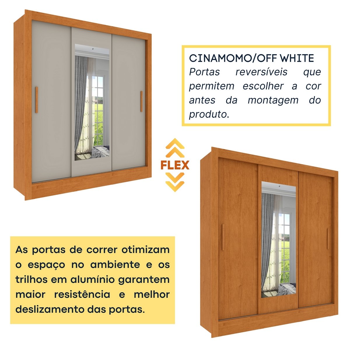 Guarda-Roupa 3 Portas Valência Cinamono/Off White/Cinamono – TCIL