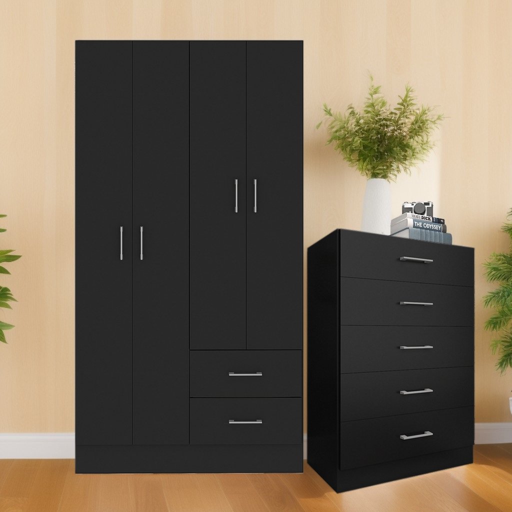 Guarda-Roupa 4 Portas Panamá 4002 + Cômoda 5 Gavetas Aruba Preto – FELLICCI