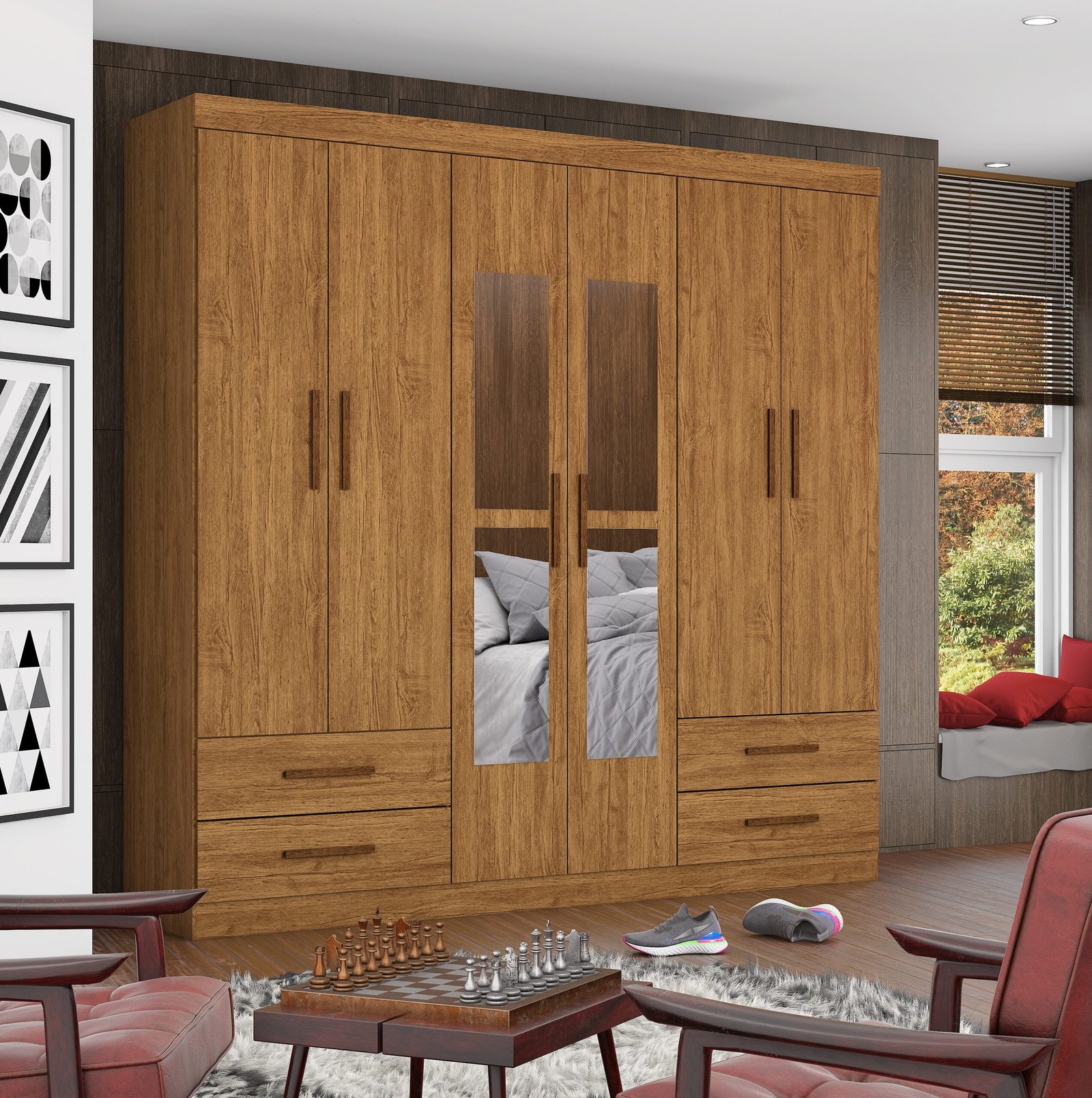 Guarda-Roupa 6 Portas Hércules(Com espelho) 1,77 m Cinamono – CARIOCA MÓVEIS