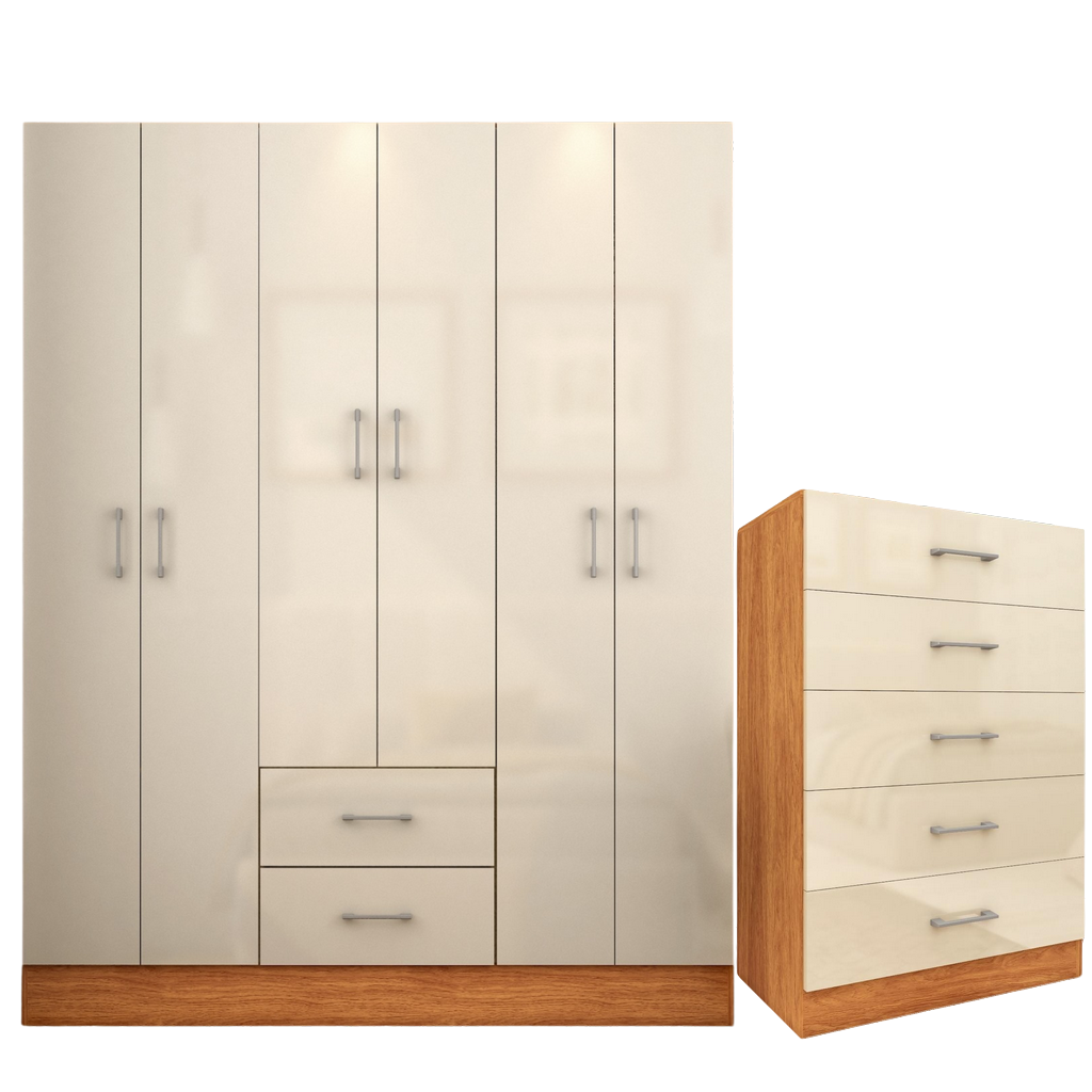 Guarda-Roupa 6 Portas Jamaica 6002 + Cômoda 5 Gavetas Aruba Cinamono/Off White – FELLICCI