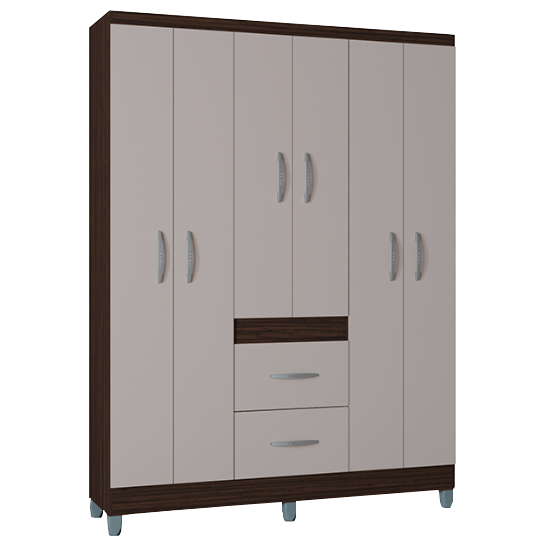 Guarda-Roupa 6 Portas Milão 1,35 m Chocolate/Off White – POQUEMA