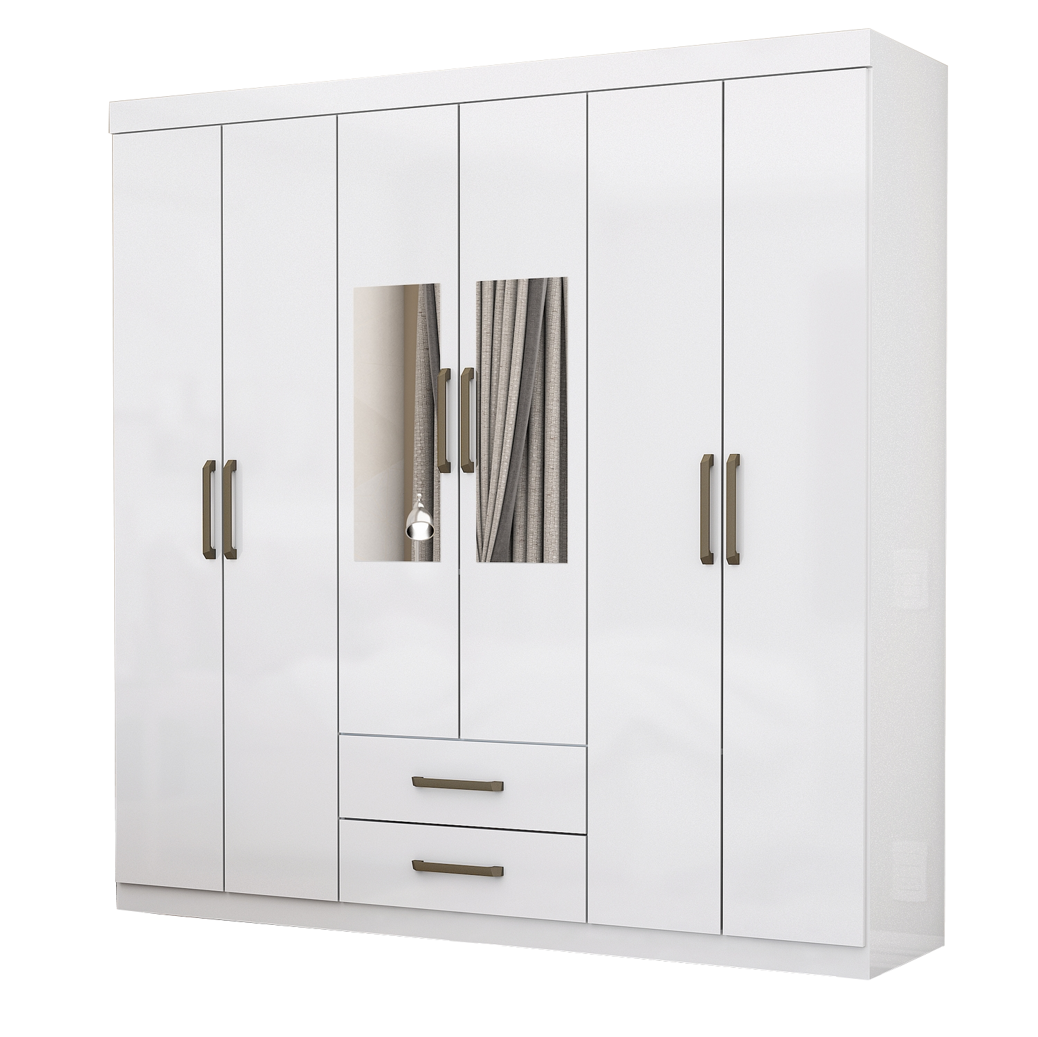 Guarda-Roupa 6 Portas(Com Espelho/Sem Pés)Áries Branco – CARIOCA MÓVEIS