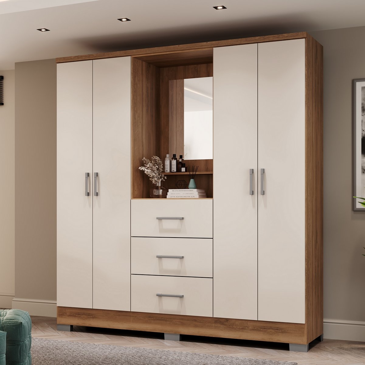 Guarda-Roupa Capelinha Roma 1181 1,60 m Freijó/Off White – CARRARO MÓVEIS