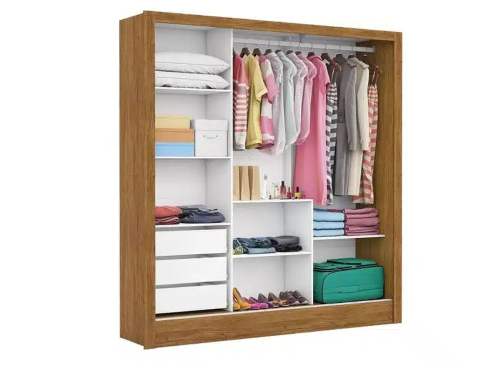 O Guarda Roupa Dubai Plus com 3 portas de correr, 2.00m de altura, 1.79m de largura e 0.47cm de profundidade, combinado com 6 prateleiras, 1 cabideiro e 3 gavetas, além de deixar o produto lindo e funcional, proporciona ao cliente acomodar suas roupas de forma organizada. As roldanas em aço e o trilho em alumínio potencializam o deslizar das portas.