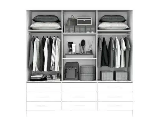 As 9 gavetas externas com deslize perfeito também são de excelente qualidade e ajudam a manter seus acessórios cada vez mais organizados nesse roupeiro. Além disso, esse guarda-roupa possui espelho e nicho de decorações que facilitam o seu dia a dia na decoração do ambiente e na utilização de um espelho com medidas generosas.
